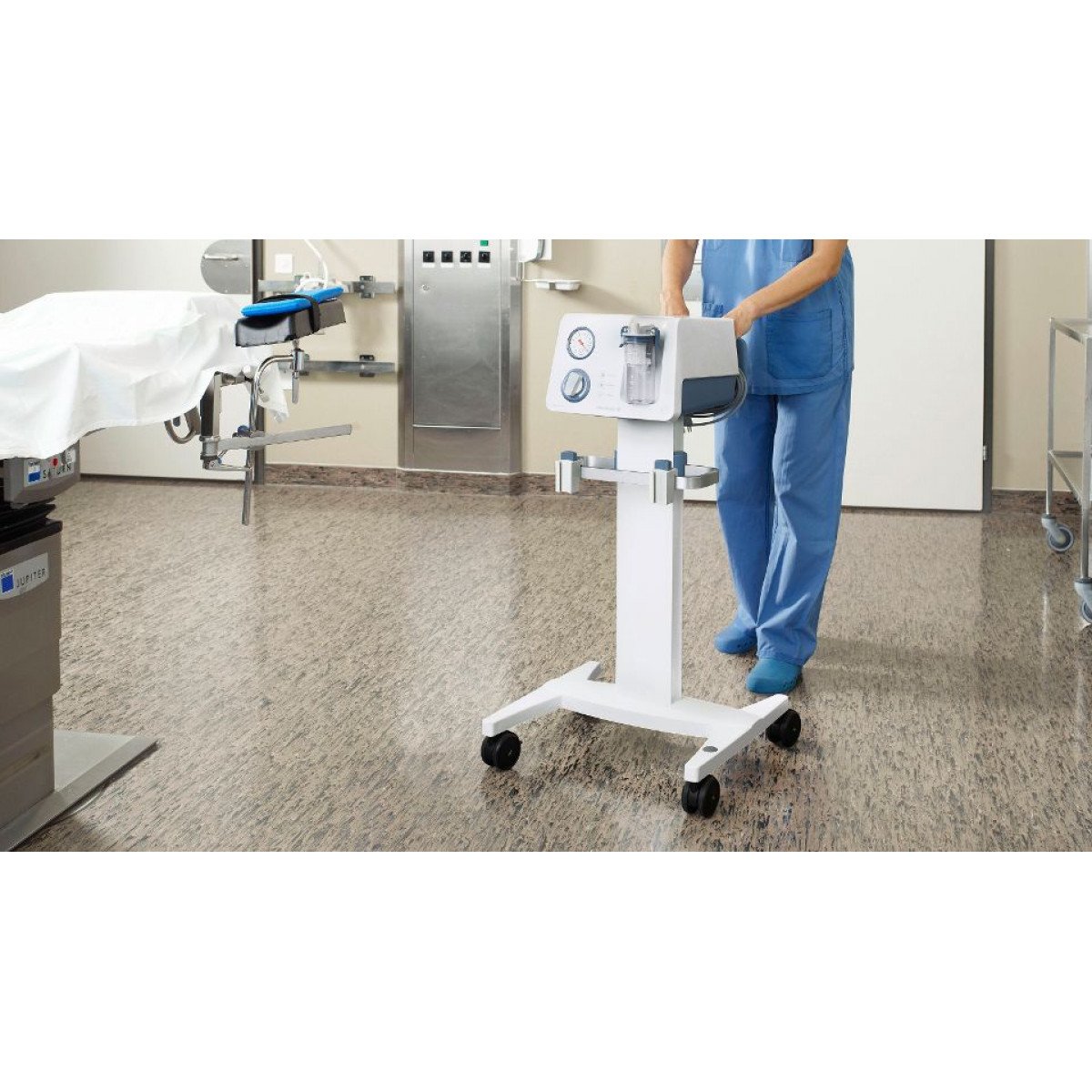 Прибор применяется в эндоскопии, дренировании ран, вакуум-экстракции при родах и любых вмешательствах, где требуется постоянный вакуум. Управление максимально удобное: включение осуществляется ножным переключателем на тележке или кнопкой CleanTouch, а мембранный регулятор позволяет точно настроить нужный уровень разрежения. Конструкция аппарата разработана так, чтобы упростить техническое обслуживание и снизить нагрузку на персонал.