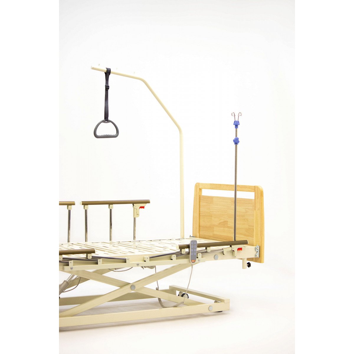 Кровать оснащена электрическими регулировками спины и ног, что помогает подобрать удобное положение, в том числе положение Фаулера — полусидя или полулёжа. Такое расположение тела улучшает дыхание, снижает нагрузку на позвоночник, облегчает общение и уход. Съёмные изголовье и изножье, а также складывающиеся боковые ограждения обеспечивают безопасность и удобство при ежедневном использовании.