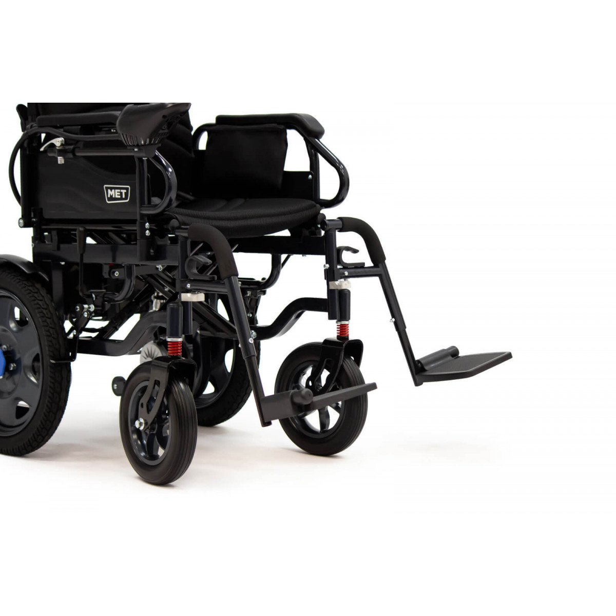 Met Start 100 оснащена антиопрокидывателями, которые существенно увеличивают устойчивость коляски. Также она оборудована двигателем мощностью 250 Вт, что обеспечивает хорошую производительность. На одной зарядке аккумулятора кресло-коляска способно преодолеть расстояние до 20 километров. Однако стоит учитывать, что фактическая дальность хода может варьироваться в зависимости от множества факторов, таких как скорость движения, вес пользователя и состояние дорожного покрытия.