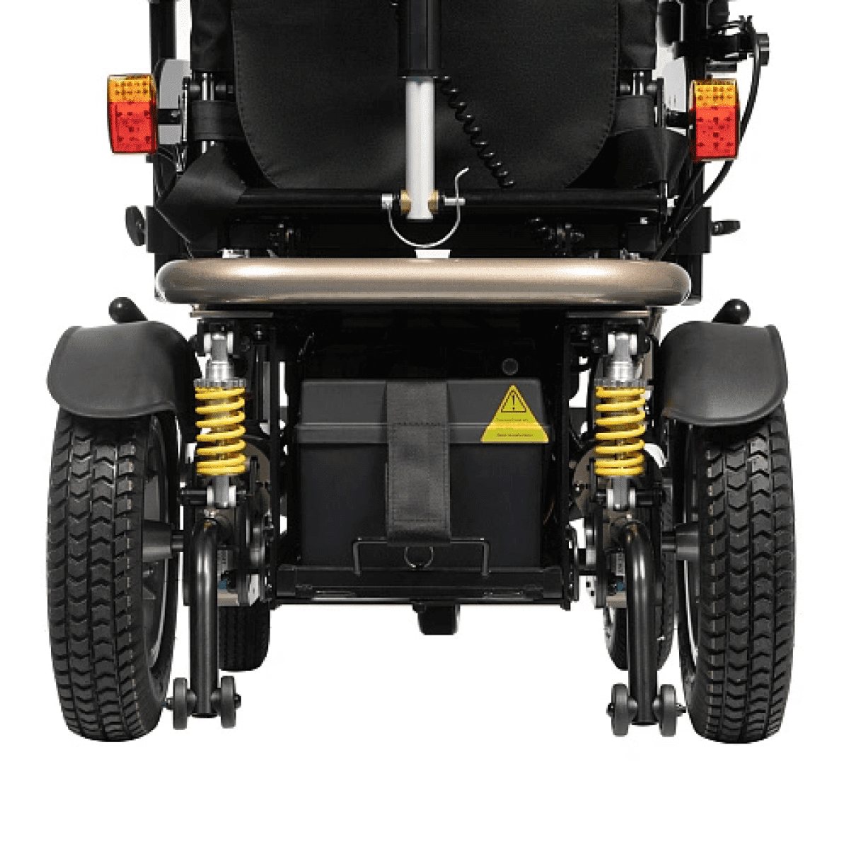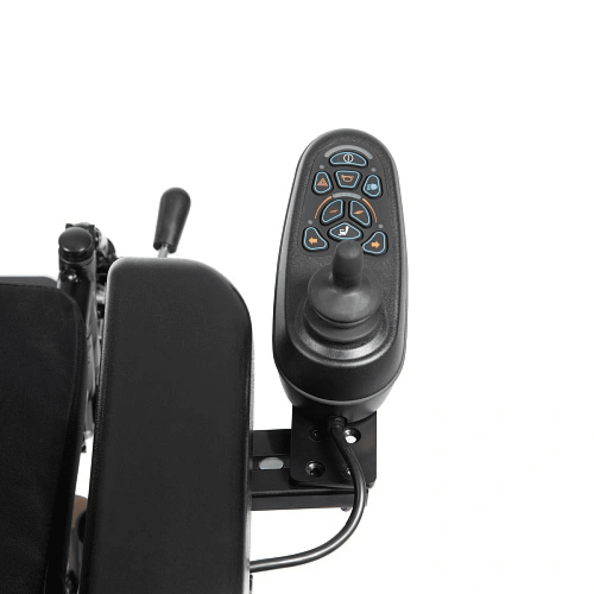 Коляска оснащена уникальным устройством для преодоления препятствий высотой до 10 см. Мощные двигатели, установленные в данной коляске, обеспечивают не только тягу, но и быстрейший набор скорости.