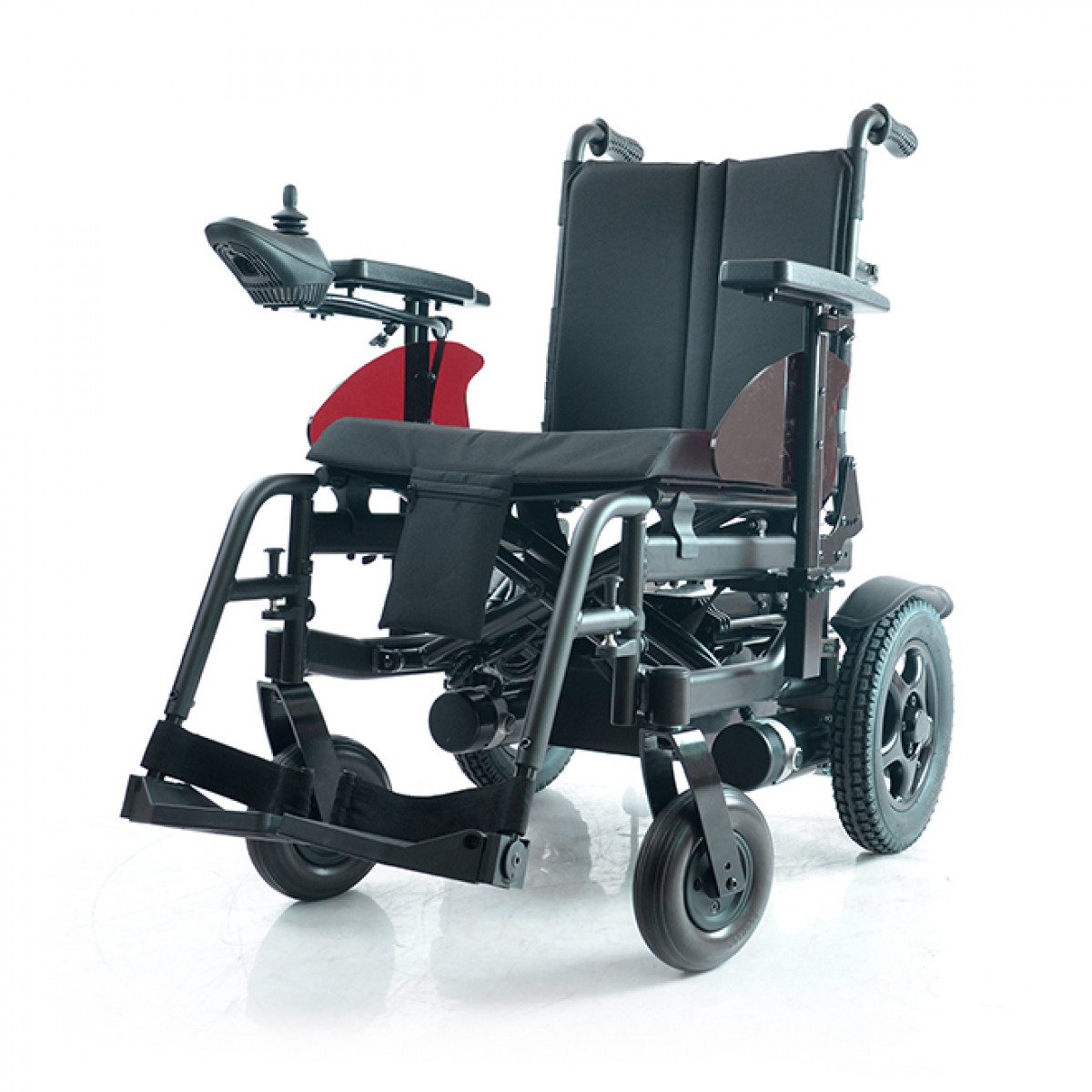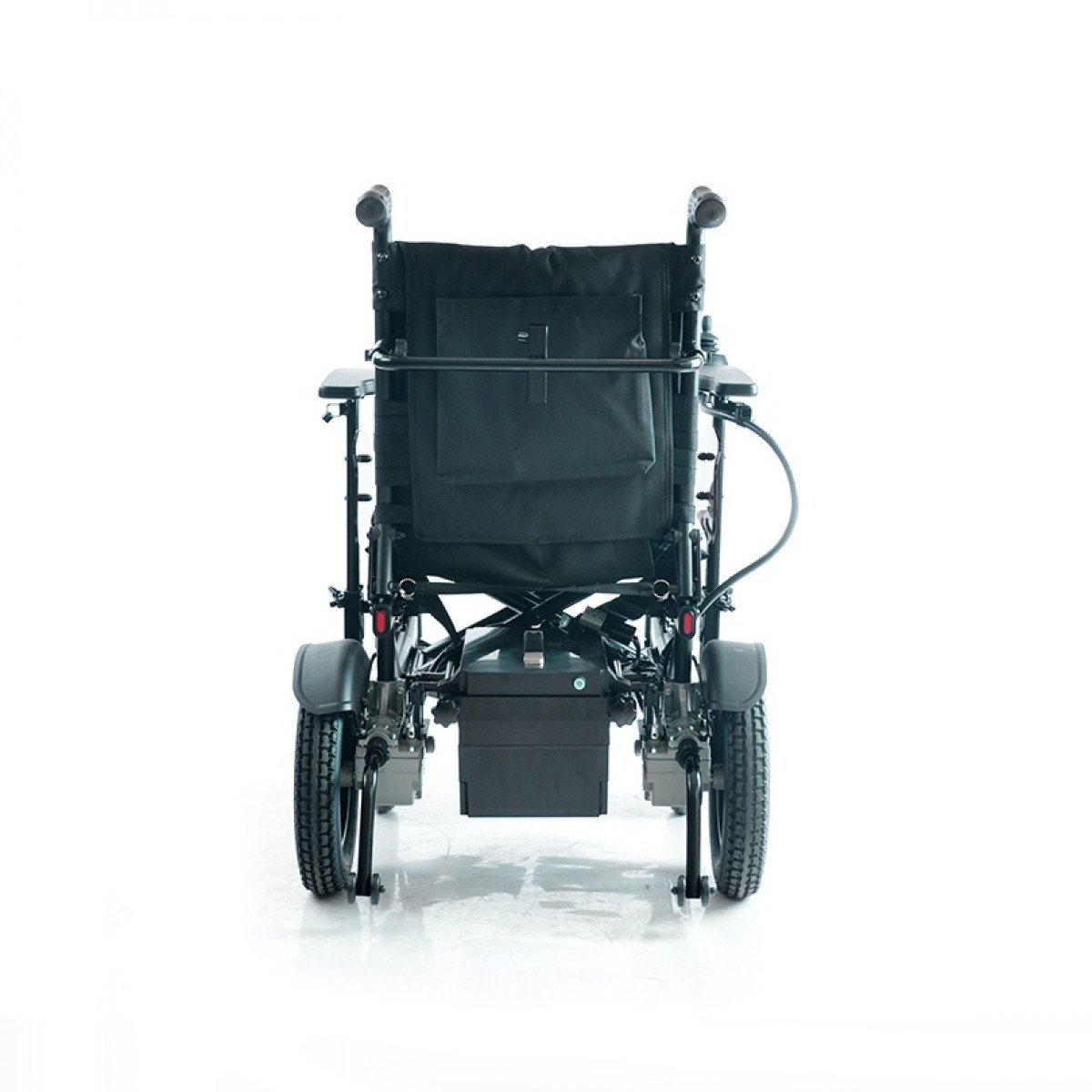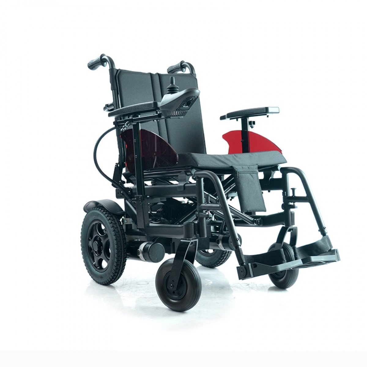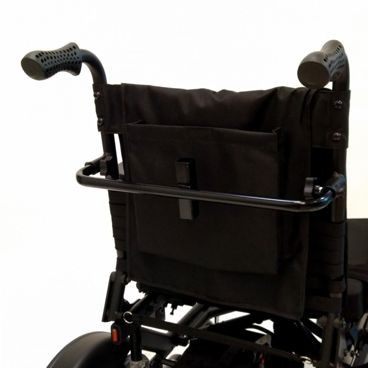 Пневматические колёса обеспечивают более мягкий ход, а антиопрокидыватели добавляют устойчивости. Аккумулятор размещён под сиденьем в выдвижном блоке, не требует сложного обслуживания и легко извлекается. Для безопасности предусмотрен ремень фиксации, а складная спинка упрощает хранение и транспортировку. Джойстик можно установить под любую руку и настроить по вылету, а встроенный USB-разъём позволяет заряжать устройства во время поездки.