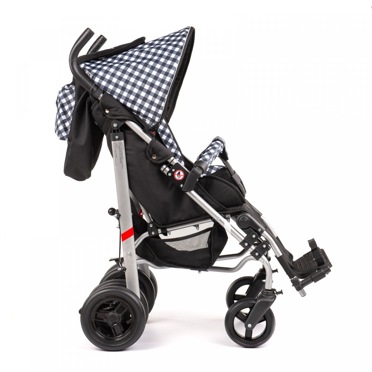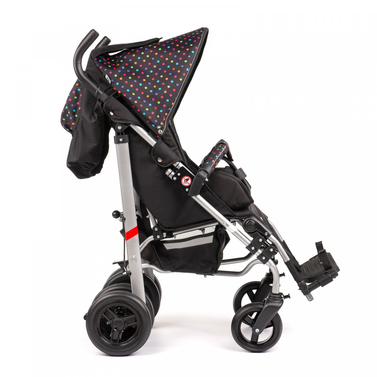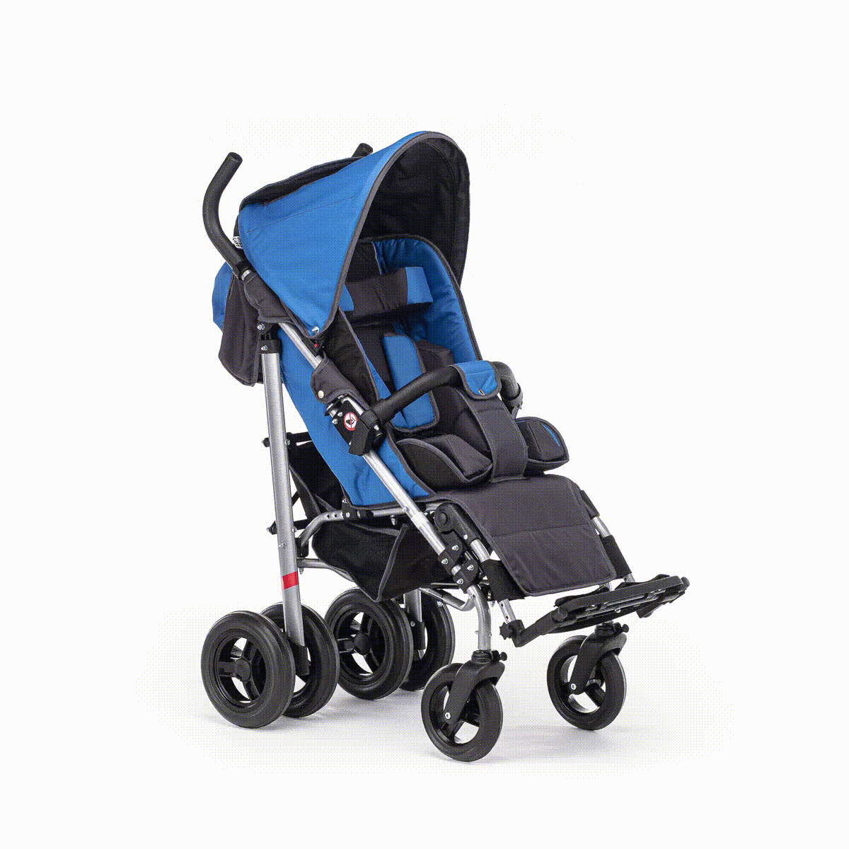 Коляска хорошо маневрирует и легко управляется благодаря поворотным колёсам. Спинка плавно регулируется, позволяя выбрать комфортное положение — от активного сидения до отдыха. Подножка подстраивается под рост ребёнка, а абдуктор помогает удерживать правильное положение таза. Все элементы поддержки продуманы так, чтобы снизить нагрузку и обеспечить стабильную посадку.