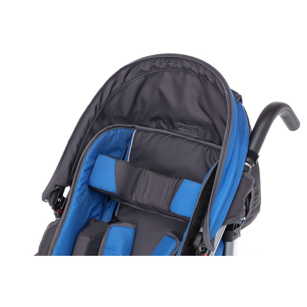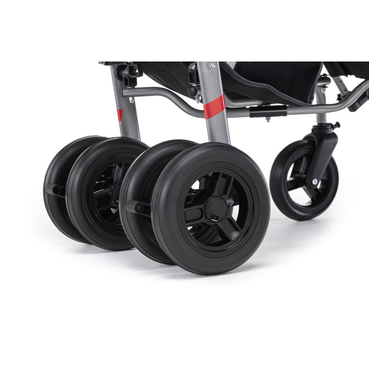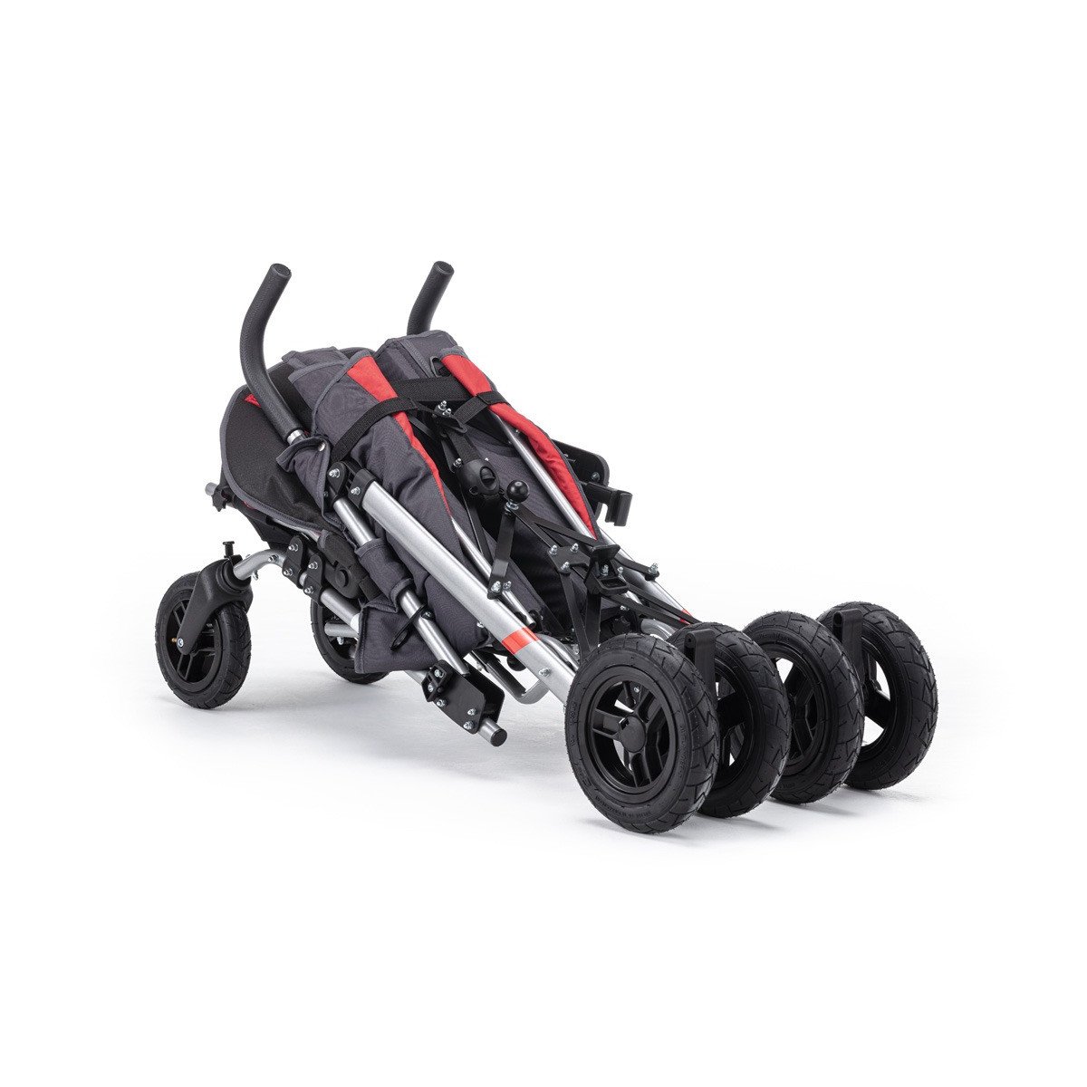 Коляска хорошо маневрирует и легко управляется благодаря поворотным колёсам. Спинка плавно регулируется, позволяя выбрать комфортное положение — от активного сидения до отдыха. Подножка подстраивается под рост ребёнка, а абдуктор помогает удерживать правильное положение таза. Все элементы поддержки продуманы так, чтобы снизить нагрузку и обеспечить стабильную посадку.