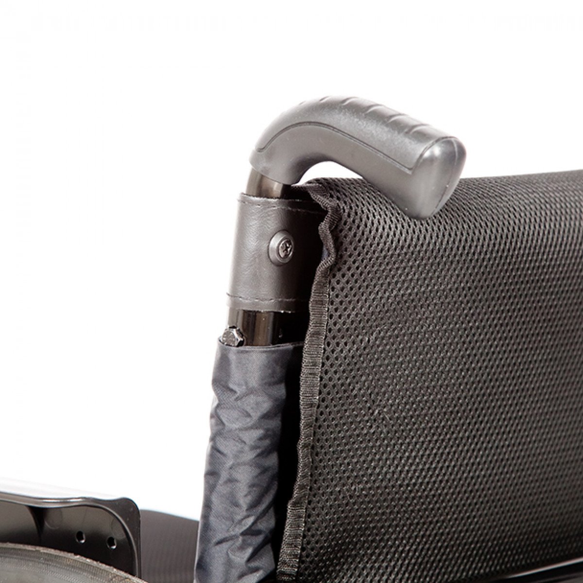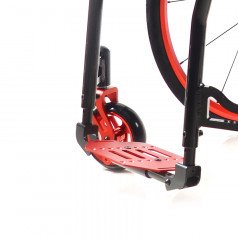 Модель продумана для комфорта в движении: передние колёса оснащены амортизаторами с регулировкой жёсткости, которые сглаживают неровности и снижают нагрузку на корпус. Спинка регулируется по углу наклона, а сиденье выполнено из прочной дышащей ткани, которая сохраняет форму при длительном использовании. Подлокотники съёмные и регулируются, что упрощает пересаживание и позволяет подъезжать ближе к столу. Подножка также настраивается по высоте.