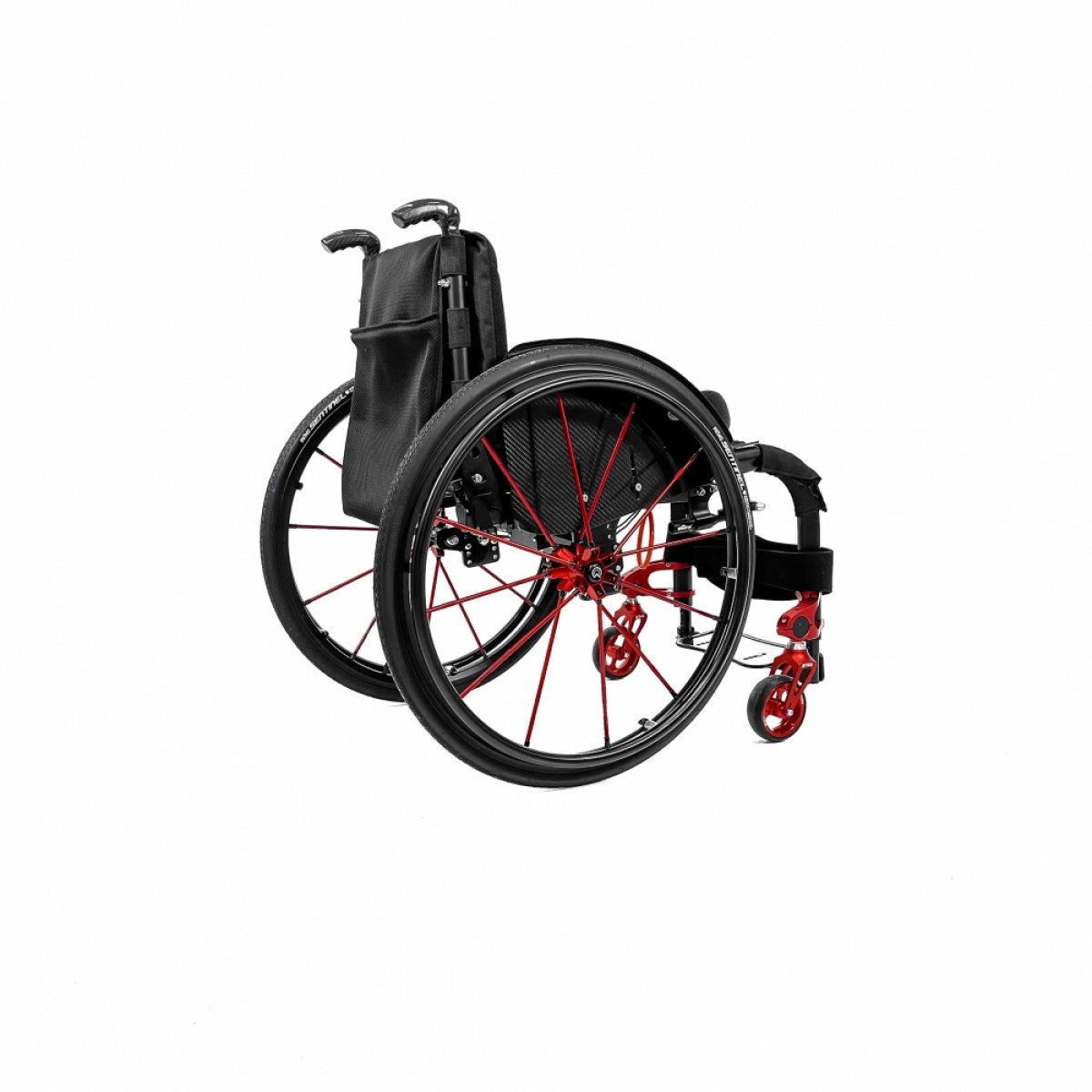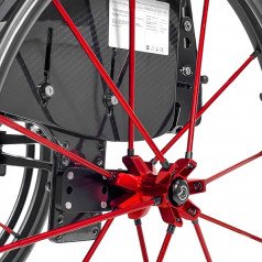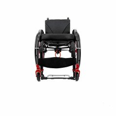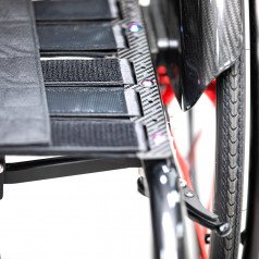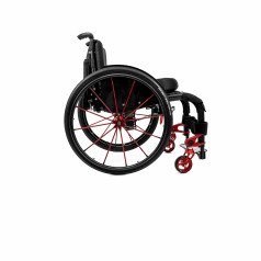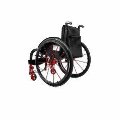 Коляска адаптируется под пользователя за счёт регулировки посадки и удобных съёмных подлокотников с боковой защитой. Пневматические колёса обеспечивают более мягкий ход, а амортизаторы в вилках передних колёс сглаживают неровности и снижают нагрузку при движении. Приводные колёса можно быстро снять, что упрощает транспортировку.