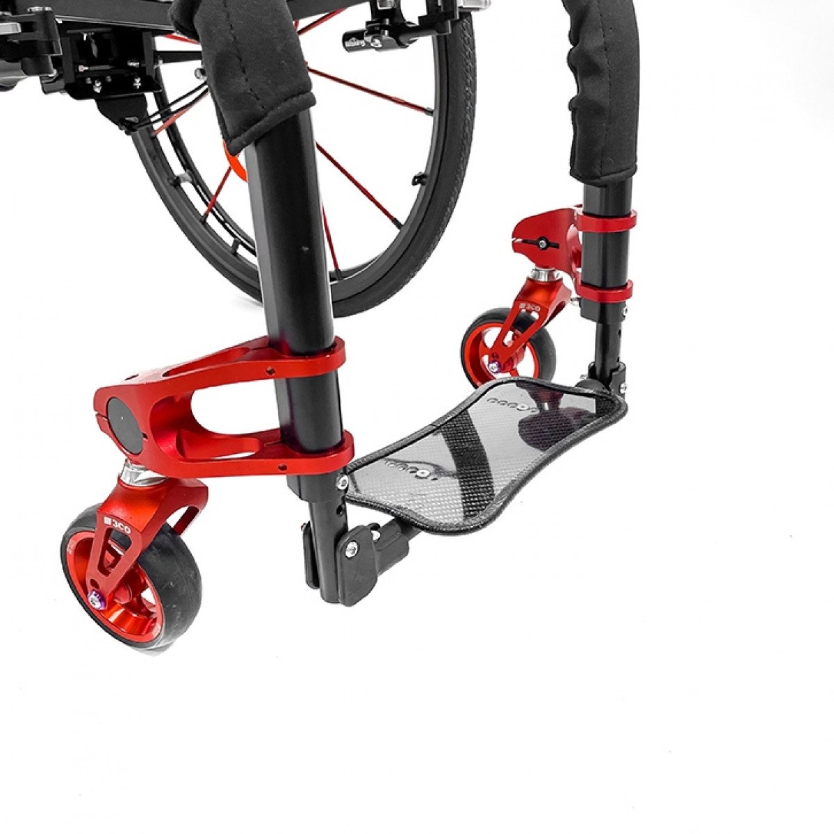Складная рама помогает компактно разместить коляску при хранении или перевозке, сохраняя жёсткость конструкции. Обода с антискользящим покрытием облегчают управление, а стояночные тормоза с регулировкой обеспечивают контроль и безопасность при остановке.