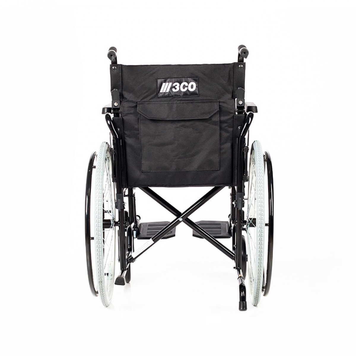 Коляска складывается без инструментов — достаточно откинуть подножки и потянуть за середину сиденья. Складная спинка дополнительно уменьшает габариты при транспортировке. Откидные подлокотники с мягкой опорой и жёсткой боковой защитой делают посадку удобнее и обеспечивают дополнительную устойчивость.