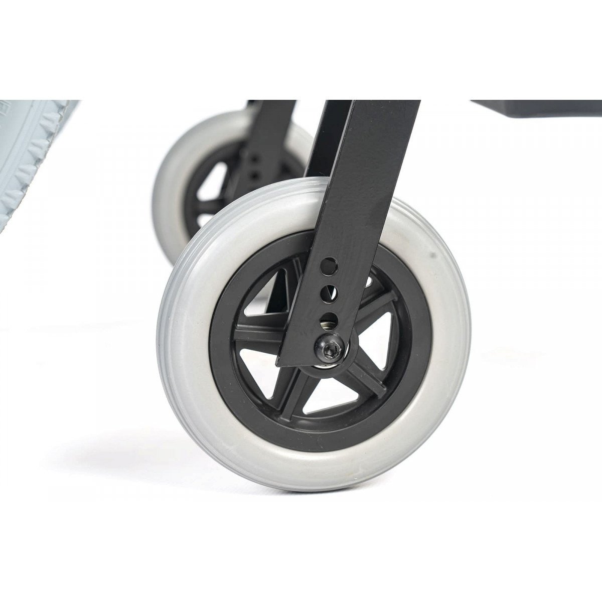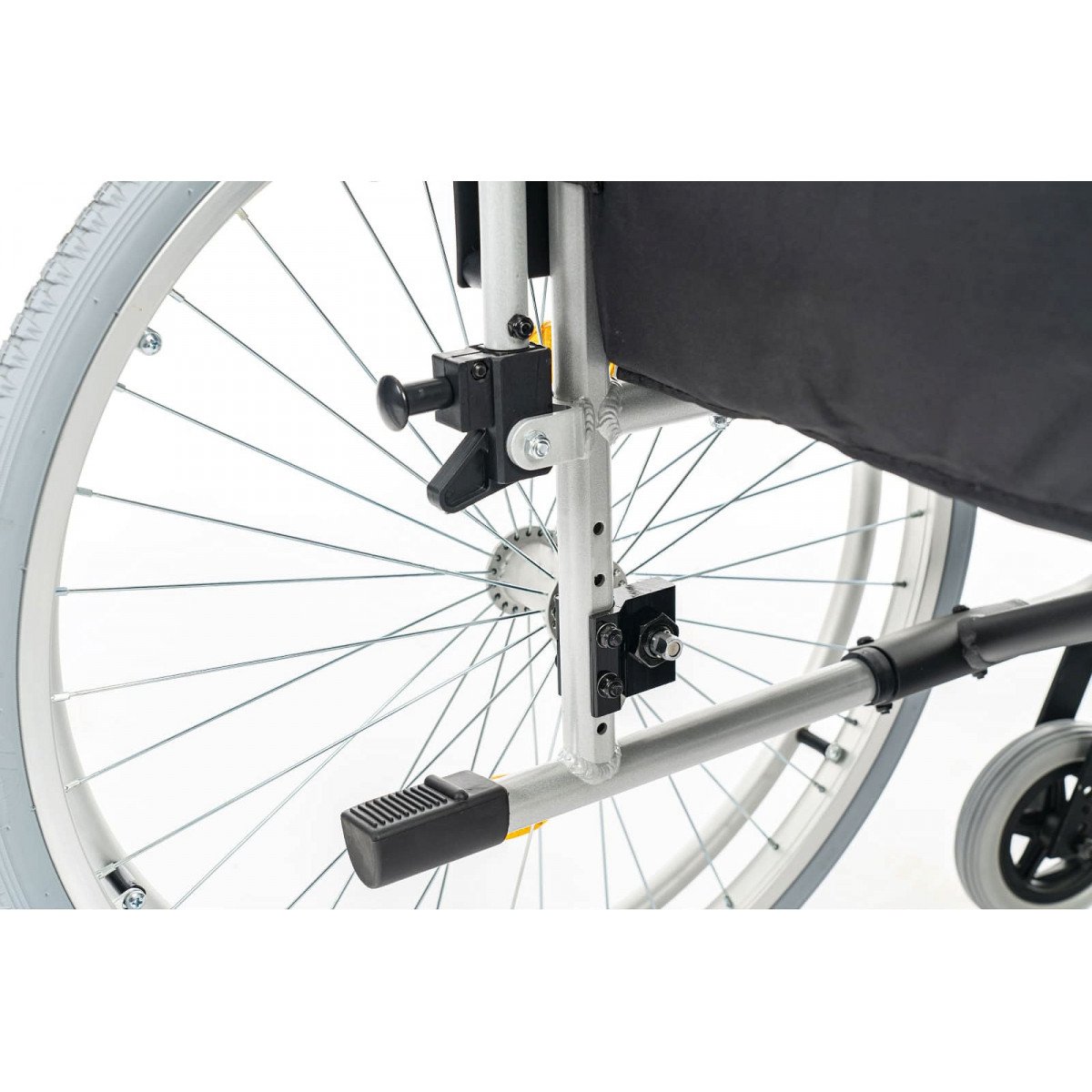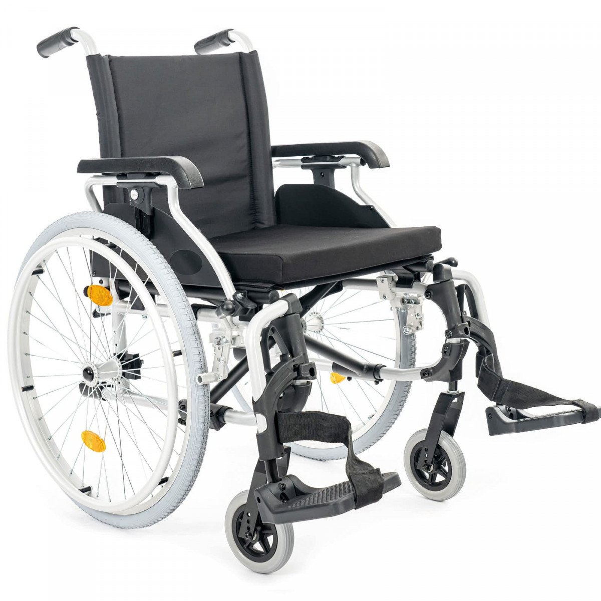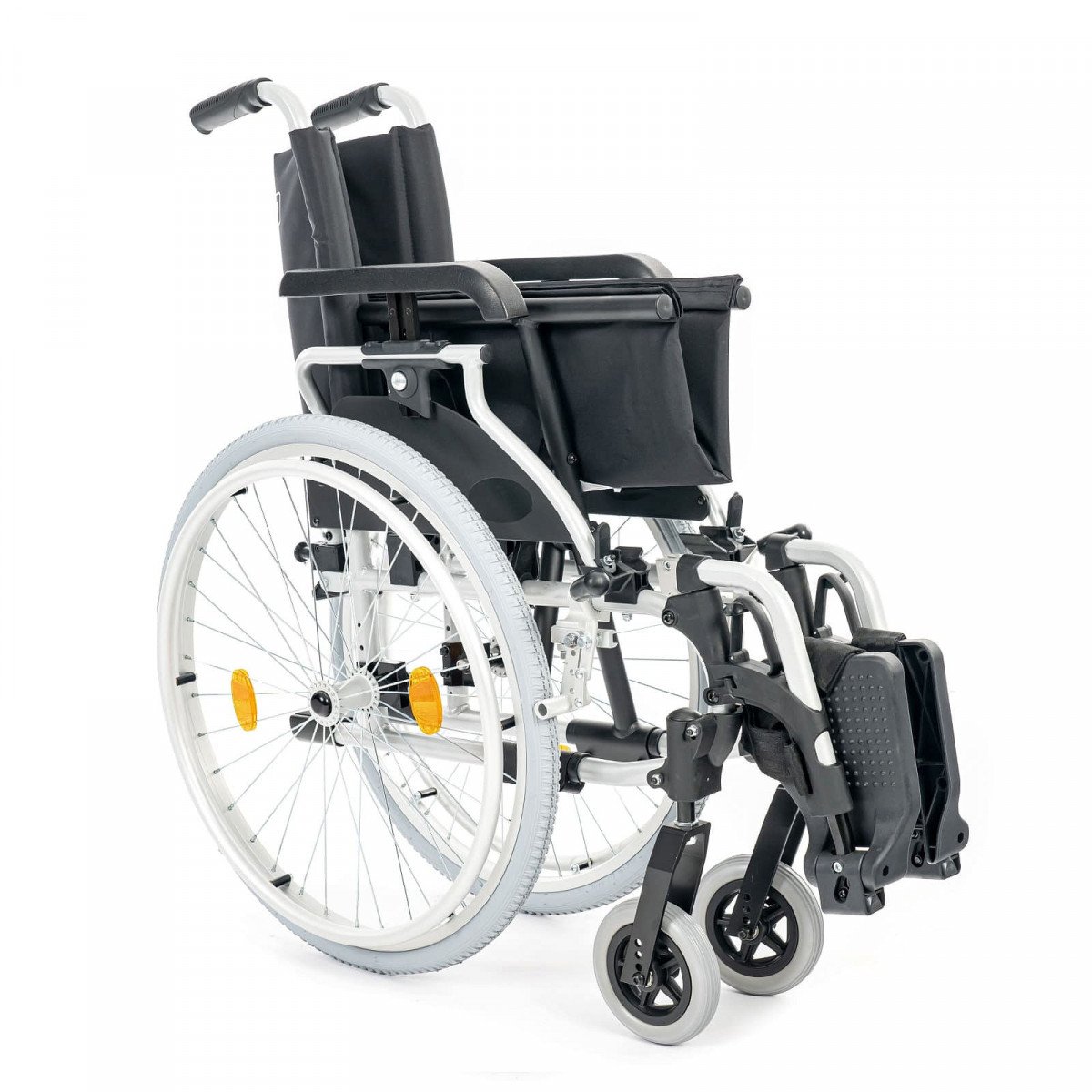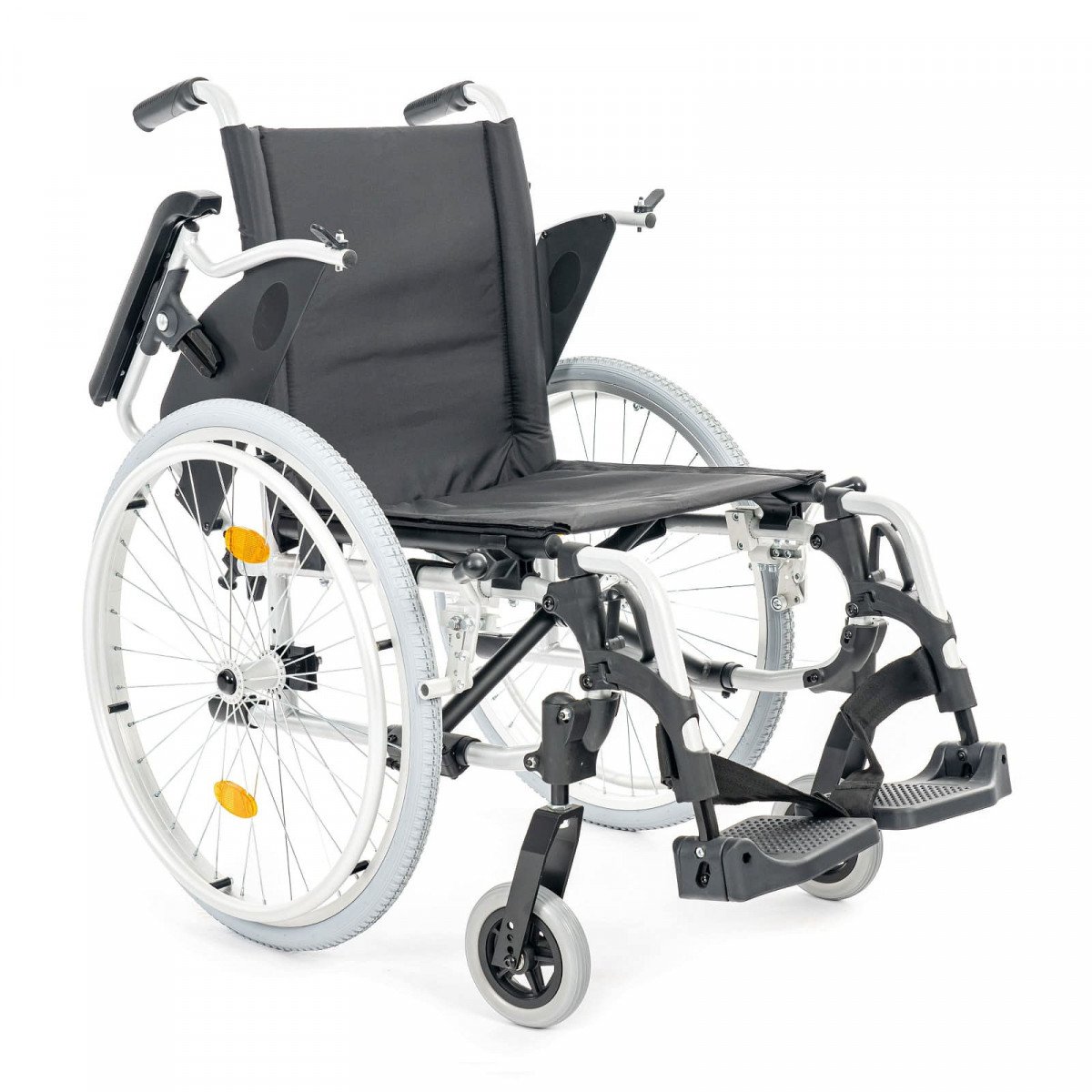 Подлокотники откидные и регулируются по высоте, что облегчает пересаживание. Поручни выполнены из цельного пенополиуретана и дополнены боковыми защитными панелями. Подножки съёмные, регулируются по высоте и углу наклона, а ремни для фиксации ног изготовлены из гипоаллергенного материала. Задние колёса оснащены быстросъёмными механизмами. В зависимости от модификации используются цельнолитые колёса для помещений или пневматические колёса для прогулок на улице.