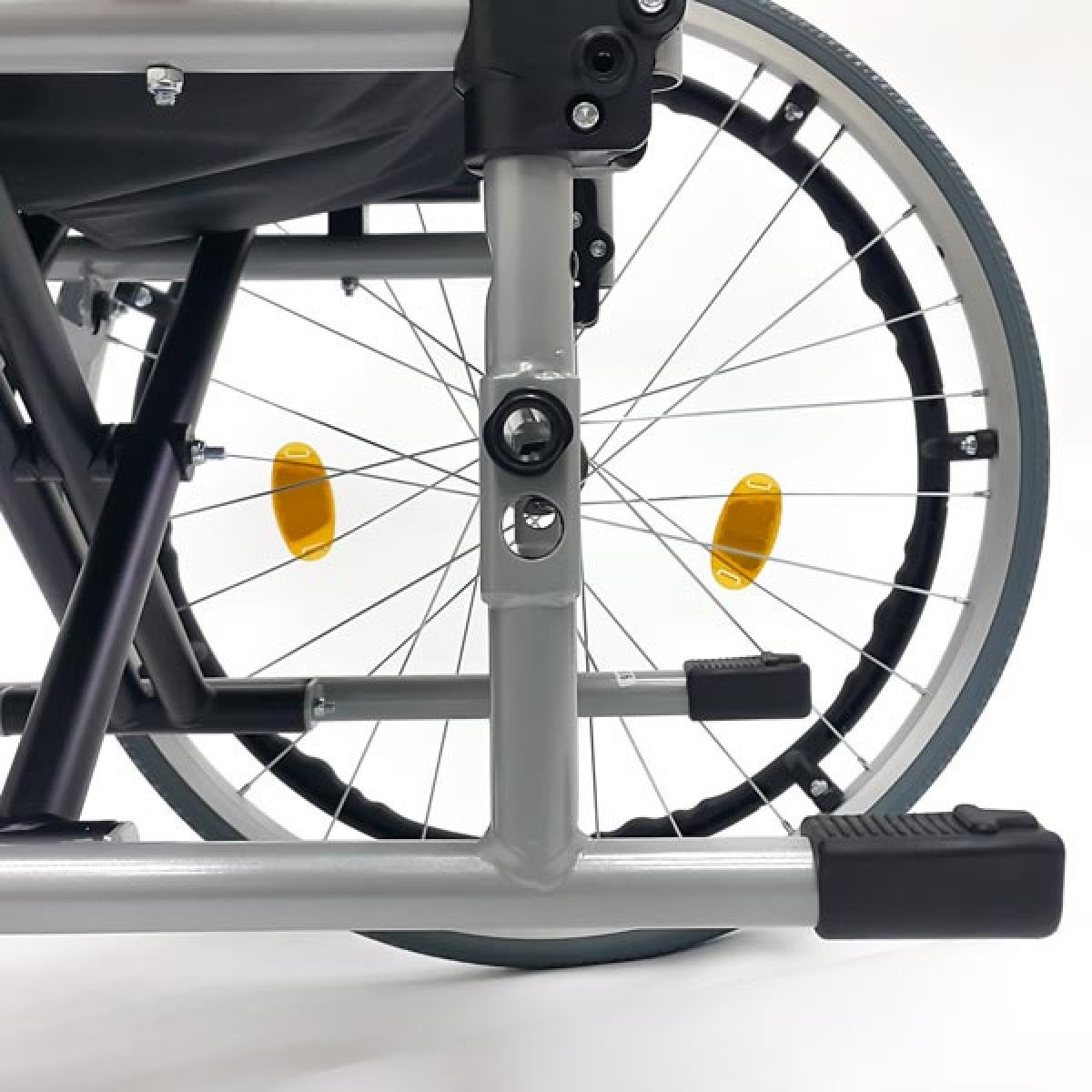 Модель отличается повышенной прочностью за счёт двойной крестовины и стальных труб с защитным порошковым напылением, которое надолго сохраняет аккуратный внешний вид. Особое внимание уделено ходовой части: задние колёса на классических металлических спицах оснащены быстросъёмными осями, что позволяет мгновенно демонтировать их для погрузки в багажник или замены. Использование качественных радиальных и опорных подшипников в передних и задних колёсах гарантирует лёгкий ход и отличную манёвренность даже в стеснённом пространстве.