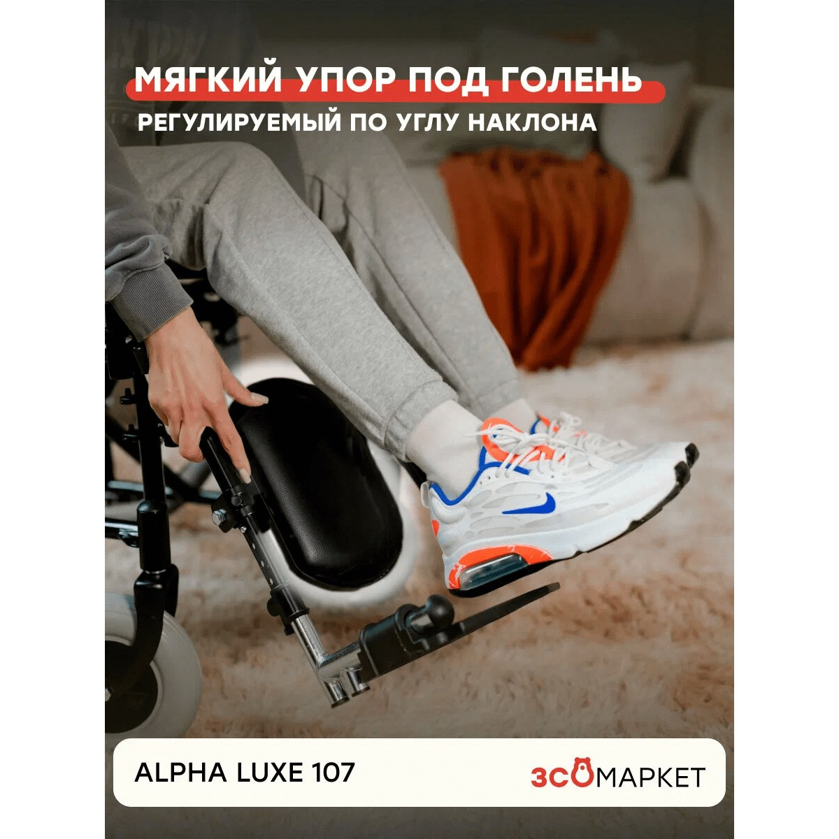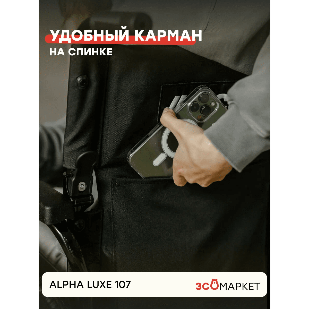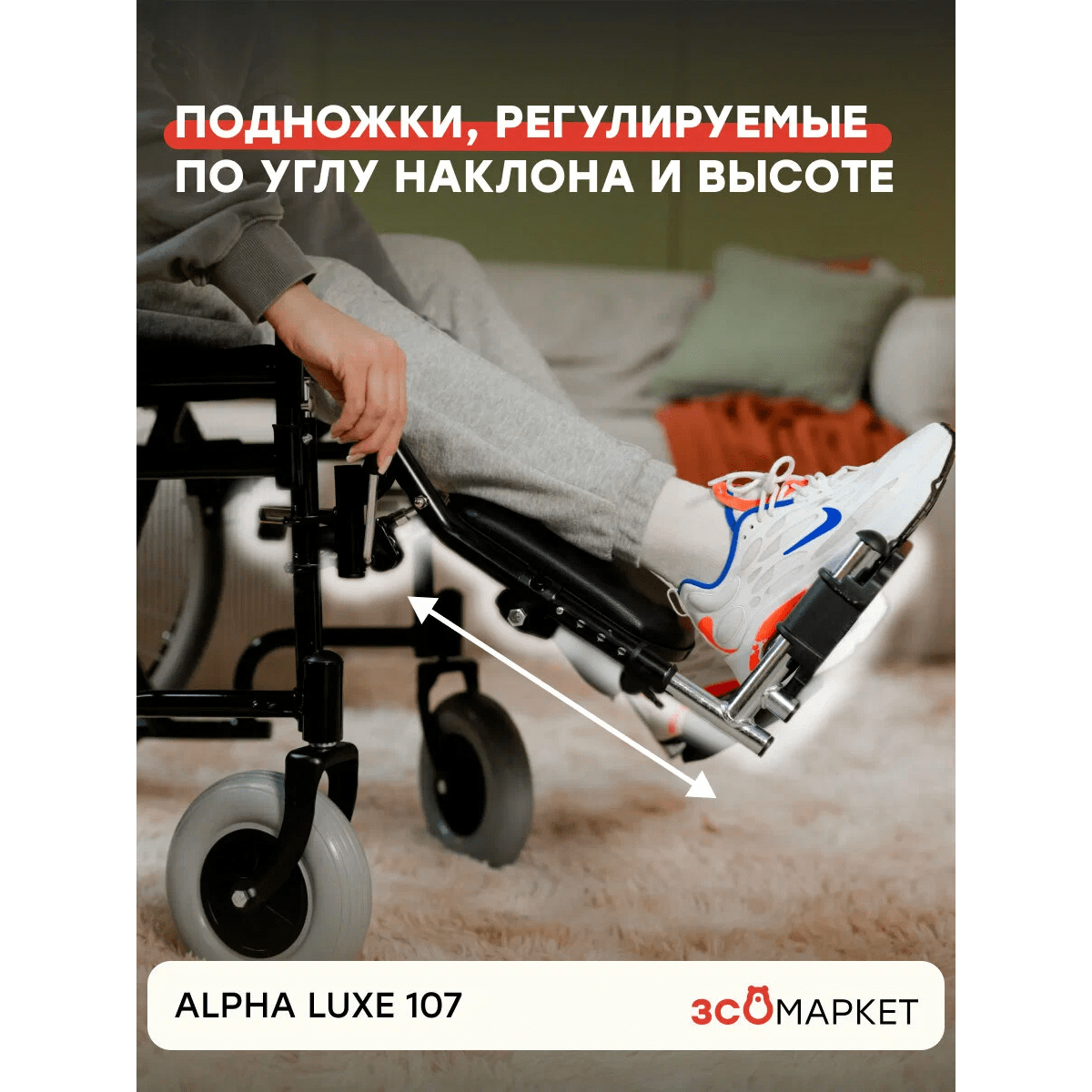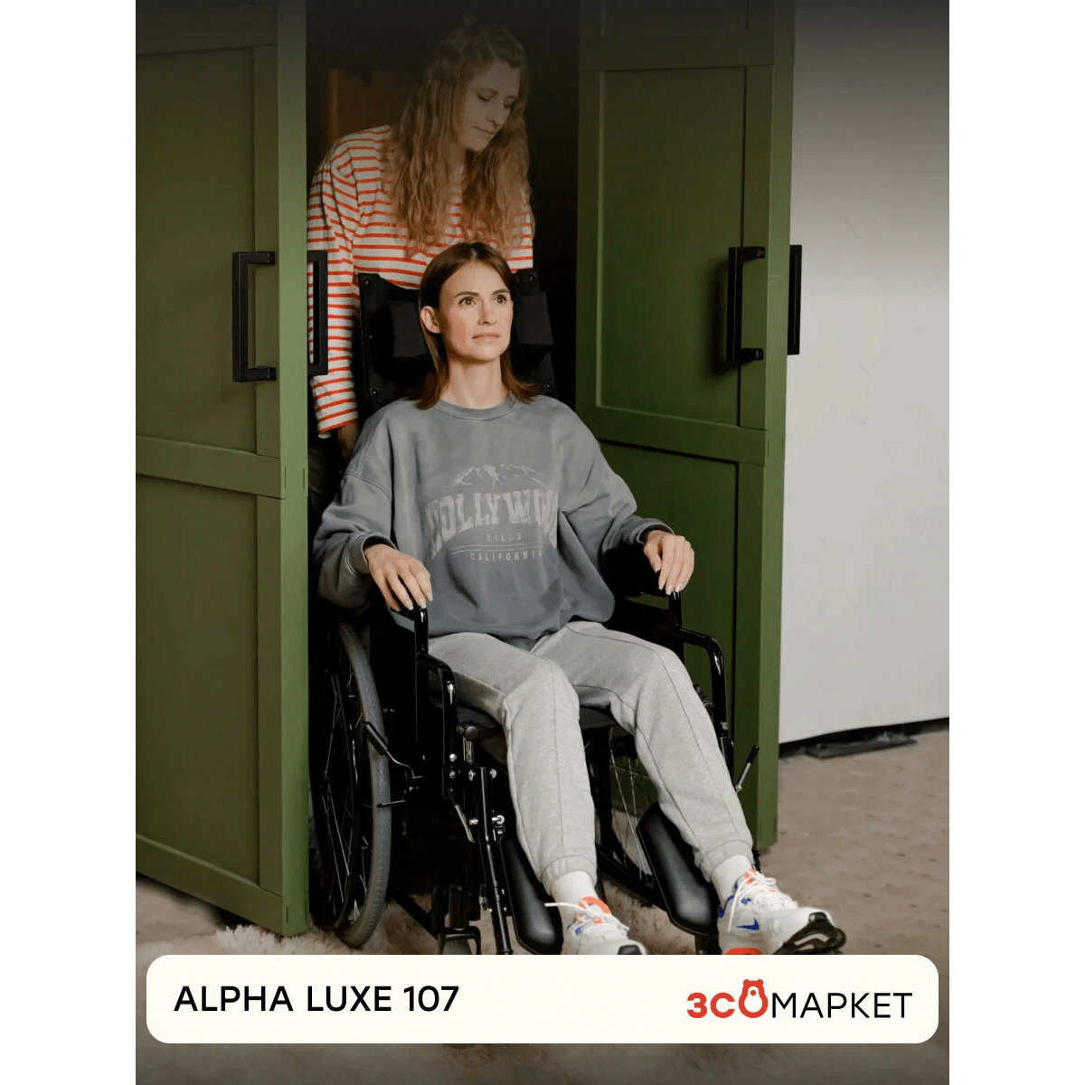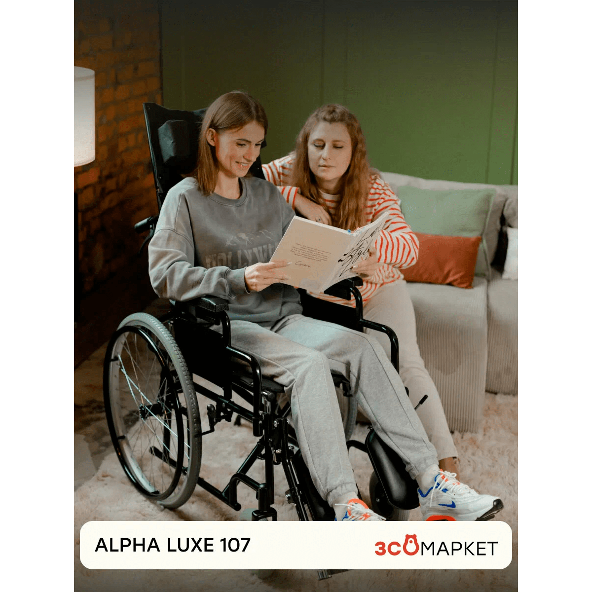 Кресло-коляска INTCO Alpha Luxe 107 (Интко Альфа Люкс 107) — складная модель с ручным приводом для дома и улицы. Главная особенность — удлинитель спинки и широкий диапазон настроек, которые позволяют точнее адаптировать посадку под пользователя и обеспечить более комфортную поддержку.