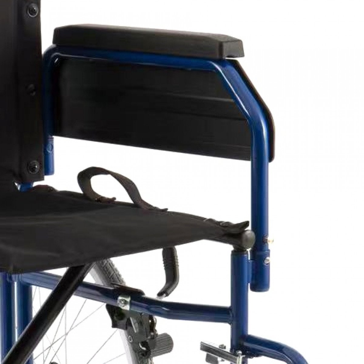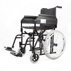 Рама выполнена из стали с антикоррозийным покрытием, что повышает долговечность конструкции. Коляска складывается без инструментов, а спинка оснащена ручками для сопровождающего. Сиденье регулируется по высоте в двух положениях благодаря регулировке вилки переднего колеса. Подлокотники откидываются или снимаются, чтобы упростить посадку и пересаживание.