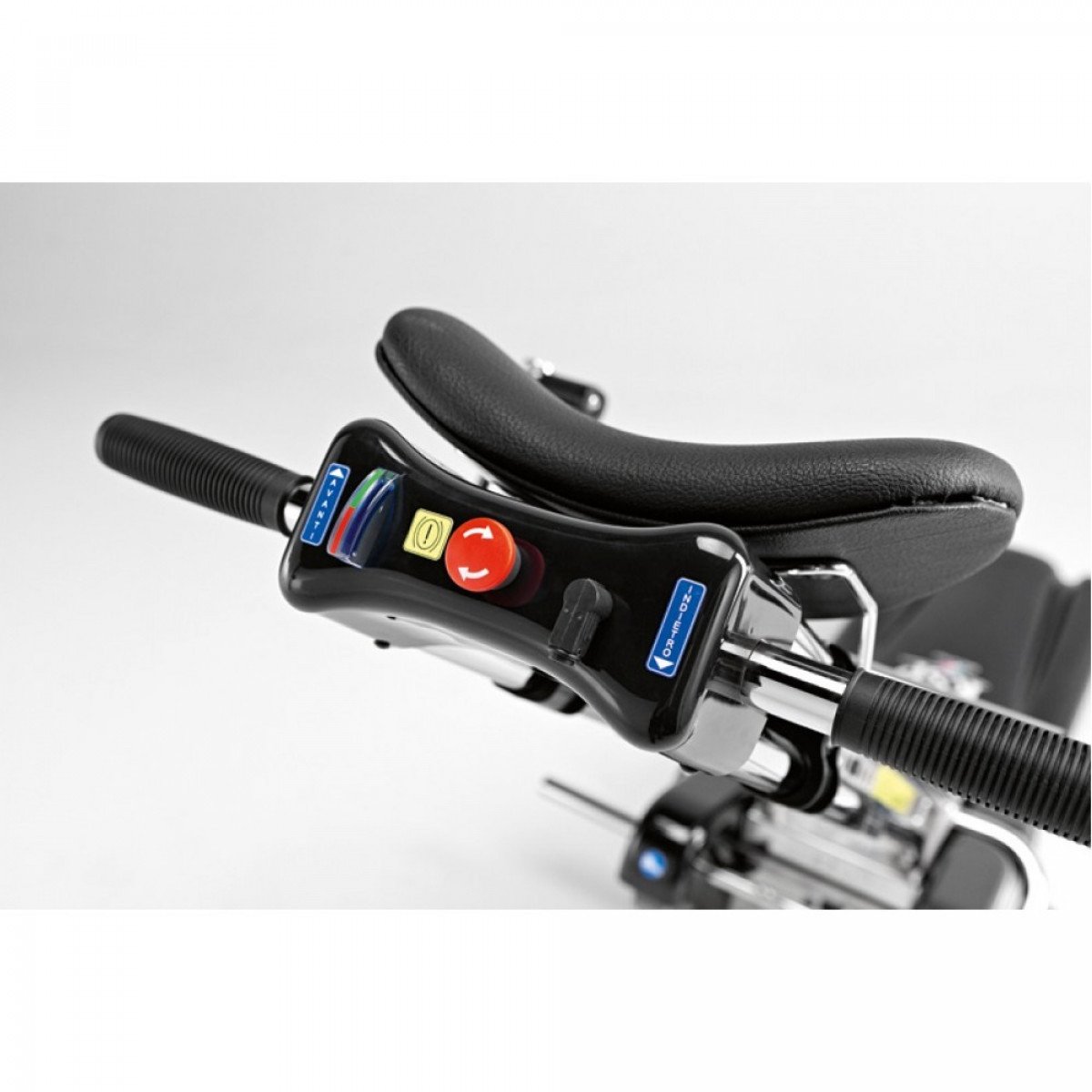 Подъёмник оснащён электроприводом и работает от аккумулятора, что делает его автономным и простым в использовании. Все ключевые механизмы и мотор надёжно закрыты прочным пластиковым кожухом, а движущиеся элементы защищены от попадания посторонних предметов. Съёмный регулируемый подголовник и ремни безопасности обеспечивают комфорт и надёжную фиксацию пользователя во время движения.