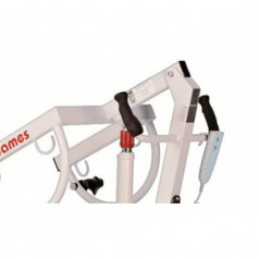 Модель оснащена ручным пультом управления, с помощью которого регулируется плавное поднятие и опускание кронштейна. Для повышения устойчивости шасси может быть расширено с помощью ножной педали. Для индивидуального подбора положения пациента доступны различные варианты ремней и перевязей.