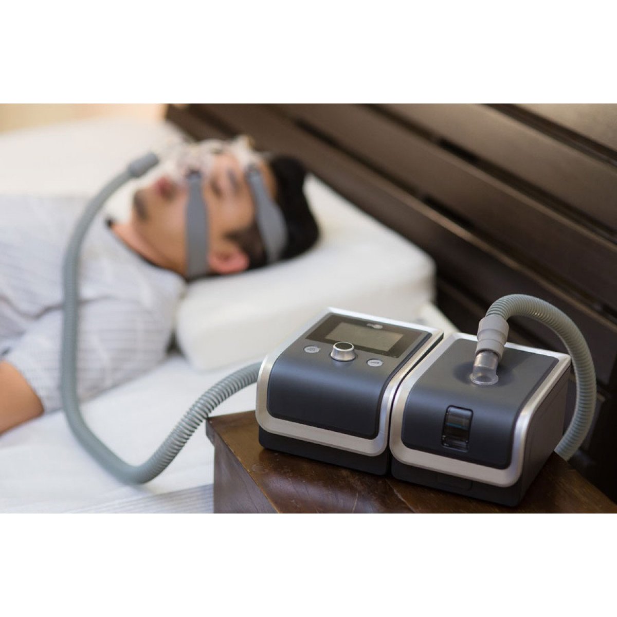 Аппарат создаёт лечебное давление до 25 см H₂O, что делает его эффективным даже для пациентов с большой массой тела или частыми эпизодами остановки дыхания во сне. Он может работать в двух режимах — помогать пациенту дышать самостоятельно или полностью брать вентиляцию на себя, если дыхание отсутствует.