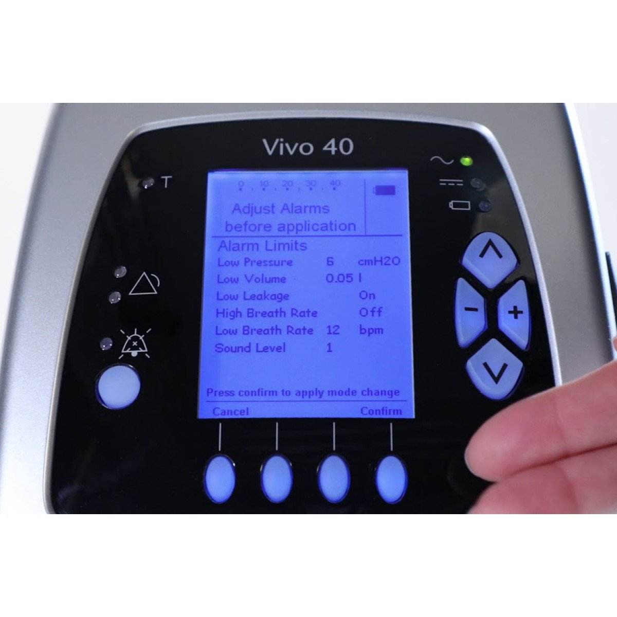 Vivo 40 поддерживает четыре режима работы: контроль давления, поддержку давления, постоянное положительное давление и вентиляцию с автоматическим регулированием инспираторного давления. Такой выбор позволяет врачу подобрать оптимальные настройки под индивидуальные потребности пациента — от лёгких форм апноэ сна до серьёзных нарушений дыхательной функции. Встроенный подогреваемый увлажнитель делает терапию мягкой и безопасной, а система eSync обеспечивает плавную синхронизацию с дыханием. Компактность, лёгкость и продуманная система сигнализации делают Vivo 40 удобным решением как для клиник, так и для домашнего использования.