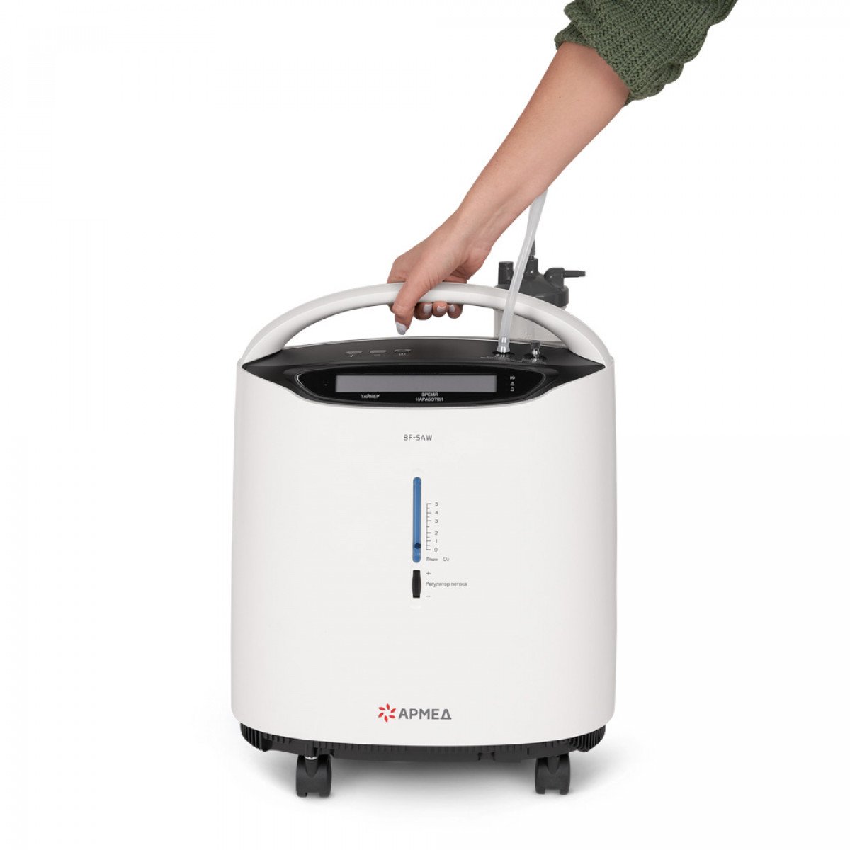 Armed 8F-5AW (Армед) — это компактный и эргономичный, но при этом мощный и высокопроизводительный пятилитровый концентратор кислорода. Может использоваться для проведения длительной кислородной терапии (более 15 часов в сутки), а также для ингаляционного введения лекарственных средств при респираторных заболеваниях.