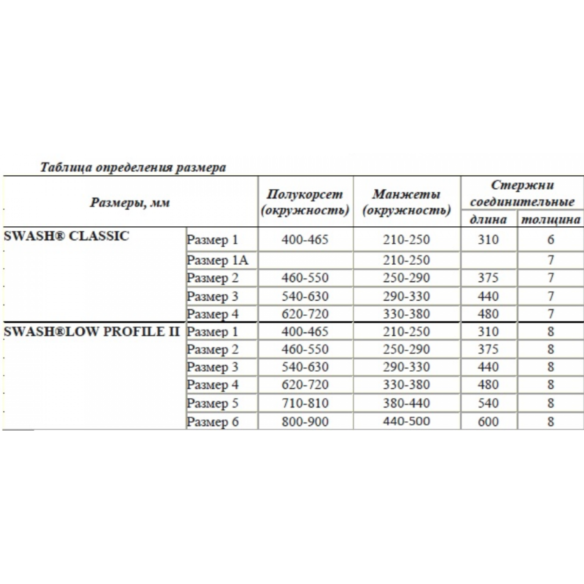 | Размер | 1 | 2 | 3 | 4 | 5 | 6 |